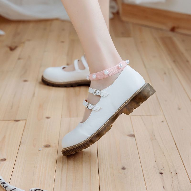 送料無料靴下 レディース クルーソックス ショートソックス シアーソックス フェイクパール シースルー フットカバー風 くるぶし 切り替え 女性 婦人 おしゃれ 可愛い かわいい お出かけ カジュアルデザイン